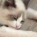 今回は飼い主さんの膝の上でくつろぐ猫の様子をご紹介します。とてもリラックスしていたのか、猫の手があまりにも可愛すぎるポーズになっていたそうで…?