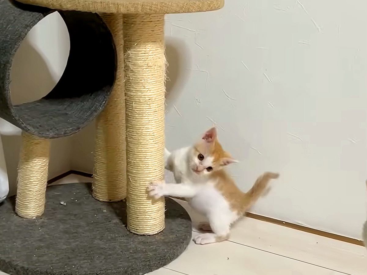 しかし最近は成長した姿を見ることができるようになりました。自分の力でキャットタワーに登ることもできるようになり、そして…。