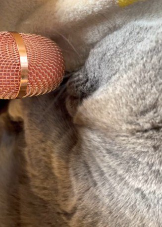 投稿主さんによると、この派手なマイク、ロイくんのいびきを撮るほかに使い道がないんだそう。そして今回、見事にロイくんの寝息を拾ってくれたといいます。マイクを通して響き渡るのは、寝息というより「ん~」「ん~~」というかわいい声音。