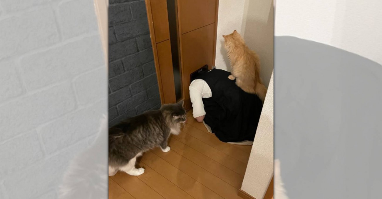 こちらの様子を@NEKOLAND13さんがSNSに投稿すると「これは見つけられない」「バツが悪そう」と大きな話題となりました。