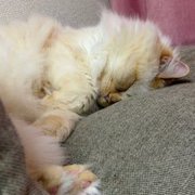 昨日、大雨で夜寝れなかったなにゃん。カミナリも鳴ってたにゃー。お母ちゃんは怖がっていたん…